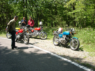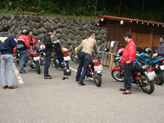 ツーリングレポート ってほどの内容じゃないけど、今回はそのがレポート致します。 今回は電気の呪いのツーリングでした・・・ ウソ! 無事故で楽しいツーリングでしたよ! 実は今回のツーリングは雨で2回お流れになり、待ちに待っての開催でした。 (今回も前日の予報は雨・・・ それでも決行しちゃいました。 降られなかったので結果オ〜ラ〜イ) さて、いつもの通り蓮田にて集合! おやじ達は朝が早いので遅刻するメンバーはおりません でも、今回は会長が前日の飲み会でゲロゲロ状態。 走りも二日酔いにムチ打つ走りでした。 (それでも朝遅れずに集合しちゃうからスゴイ! さらにソフトクリーム食べてた・・・) 鹿沼ICで、す〜さんと合流すべく、東北自動車道を快調に走ります。 って、す〜さんとの合流地点に解郎号が来ない・・・ 結構待ってようやく到着! 電気系のトラブルらしく調整していたようです。 (解郎号は今回のツーリングに向けて製作したばかりのfourだったんです。 でも、そこはそれ何たって大方解郎さんですから、サクっと調整して見事復活!) 栃木のす〜さんと久々に合流して、いよいよ日光ツーリングです。 日光といえばす〜さんのお膝元なのですが、きのこさんも年に3回くらいきのこ採りに日光に来るようで、この二人は地理、名所に詳しいです。 走りは地理に詳しいきのこ号とテクニシャン解郎号が快調に飛ばし、す〜号、よんほあ号とその号が真ん中、会長号は二日酔い走り、ぱぴ〜号はそれに付き合うって感じでしたでしょうか? それにしても、 天気がいい!(予報は何だったんだーー!) 新緑の季節の日光は気持ちいい! 眺めが良い! 空気がうまい! 最高のツーリングです。 ひとしきり山道を走り、昼食に蕎麦を食い、いよいよ白根温泉です。 やっぱ温泉はいいや〜 温泉に入った後はビールを飲み(飲まない人もいるけど)、一休憩です。 帰りは渋滞のいろは坂をすり抜けながら降り、とっとと帰路につきました。 途中GSで、す〜さんがうまい蕎麦屋にいく事を提案!(たしか掲示板でも、そのような誘いがありました) 日光宇都宮道路を途中下車して、いざ蕎麦屋へ! っとここで、なんと す〜号の調子が変・・・ 2度目の電気系トラブルでした。 蕎麦屋までもう少しというところでしばし調整! 解郎さんを中心に確認したけど、原因不明・・・ ギヤーを入れて走ろうとするとメインフューズが切れてしまうのです。 蕎麦屋に予約を入れてあった事と、す〜号の復活が厳しそうな事から、す〜さんは友人に頼んで車でfourを運んでもらう事に、他メンバーは蕎麦屋に行く事にしました。 なるほど、す〜さんお勧めの蕎麦はうまかった! みんなペロリとたいらげて、す〜さんのもとへ・・・ 丁度fourを車に乗せた後で、す〜さんに別れを告げて、いざ帰路へ! さっ! 帰るぞ〜 高速も空いてるぞ〜 っと快調に飛ばし、蓮田に到着! 皆様お疲れ様でした。 っで、終わらないのが今回のツーリング・・・ わたし(その)、きのこ号が先に蓮田を出て、料金所を過ぎてみんなを待つも、誰も来ない・・・ あれ〜? きのこさん曰く、「かなりゆっくり走ったけど誰も来ないから、きっとトラブルだな」・・・ そうなんです。 待つこと30分?(もっとかな?) 今度はよんほあ号が電気系トラブルで止まってしまいました。 やはり解郎さんが色々確認して、とりあえず復活し、料金所までたどりついたのです。 っで、料金所を過ぎてエンジン止めたら、また同じトラブル発生! 解郎さんが暫定処置をして、とりあえず解散となりました。 (実はよんほあさんこの後も下道で1度止まってしまったようです。 もう押して帰るか〜って諦めていたら、また直ってとっとと帰ったそうです) いや〜 電気の祟りのツーリングでした。 でも、無事故だったわけだし、みんな元気に楽しんだわけで、終わり良ければ全て良し! 次回もまた楽しみましょう! ![]() ![]() ![]() ![]() ![]() ![]() ![]() ![]() ![]() ![]() ![]() ![]() |