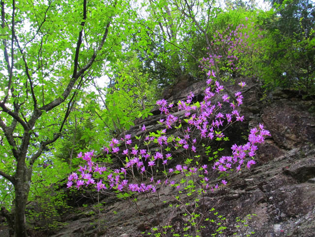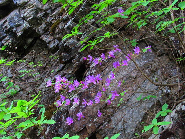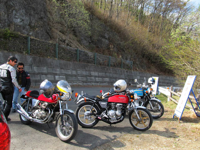 2011年5月8日 夏日の予報なので、せっかくなので軽くツーリングして来ました。 参加メンバー キムさん まこちゃん ジローさん ゲスト◎◎さん たぁ ![]() ![]() 集合場所の川越マクド。 黄色い背中はホームページのBBS告知を見て参加してくれた、ゲストの◎◎さん。 血統の良い398のオーナーです。 ジローさんはおよそツーリングらしくない格好(ワハハー) ![]() ![]() キム号朝からデレスケ(らしいよ) 秘孔を突いてる右手はジローさん。 ![]() R299をダラダラ流して正丸駅。 この道は早朝でないと楽しめませんねー。 珍しく赤青黄色全色揃いました〜♪ ゲスト◎◎氏とはここでお別れ。 またどこかでご一緒しましょう♪ ![]() その後も県道をダラダラ流して小鹿野は夢鹿蔵に到着。 オートバイ専用駐車場はこのお店の物かと思ったら、公共施設(らしいよ)。 小鹿野の町は昔ながらの宿場町みたいなひなびた良い風情。 時間が許せばブラ〜リ散歩してみたいなぁ。 町興しの一環で、珍しくバイクを優遇してるみたいですねー。 夢鹿蔵自体は喫茶店風?のお店なんだけど、ここではわらじカツ丼などを出前できるのね。 ![]() キムさん注文の東大門わらじカツ丼。 甘辛い和風ダレが染み込んだトンカツが2枚なので一足ね♪ ![]() こっちは鹿の子わらじカツ丼。 ま、見た目は一緒っすね。 最大の違いはお新香で、鹿の子の方が手作り感あり。 逆に味噌汁は東大門のほうが豆腐も入っててデラックス(ワハハー) いろんなお店とタイアップしてるから、夢鹿蔵に来ればあっちこっちのカツ丼を食えるのね。 今回僕とキムさんでカツを一枚づつトレードし、食べ比べました♪ わらじカツ丼元祖は安田屋さんらしいけど、あすこなら作りたてアツアツをはふはふ食べれるんだけど、味噌汁が無いのが玉に傷。 店の雰囲気も悪くないし、誠に惜しいんですよねー。 究極は安田屋さんへMy味噌汁持参か?(ワハハー) ![]() 昨夜の晩飯がトンカツだったまこちゃんとジローさんは縄文焼きカレー@わらじ?(名前失念) 古代米のカレーライスに例のカツやチーズ?がトッピング。 うまそーです♪ ![]() ![]() 帰り道は秩父さくら湖経由で有馬峠にてパチリ。 秩父さくら湖と名栗湖を結ぶこの林道、正式名称は 『広河原逆川林道』 てゆーらしいけど、長ったらしくて(ワハハー) 山桜が丁度満開で、ところどころ眺望が開けるところで絶景を楽しみました。 まこちゃん号は最近機械曲げになりました♪ キム号は相変わらず改造悪の道にドップリです(ワハハー) ![]() ![]() 桜と同時期に咲くイワツツジ。 ミツバツツジとの違いが判らんけど、崖に生えてるのでイワツツジでいいかなと(ワハハー) 桃色というか薄紫色というか、この花好きなんだよな〜♪ 新緑と岩肌とツツジの桃紫のコントラストがいーんだよね! ![]() 山吹。 里では八重咲きも良く見るけど、こっちが原種だと思うんだけどどーなんだろう? ま、いづれにしても綺麗で好き。 ![]() これは何だかわからないけど、急峻な崖に張り付くように生える、清楚な感じの花。 バラ科かな? ![]() 砂号なにげにパチリ。 ![]() その後名栗湖を経て秩父の街中をダラ〜リ抜けて、圏央道日高IC〜関越道三芳SAで解散となりました。 プチツーと言いながら、帰り着いたのは18時。 ま、集合が10時半と遅かったのでしょーがないんですけどね、明るいうちに帰れたので良しとしましょう♪ 幹事のキムさんご苦労様でした。 また行きましょう。 |
