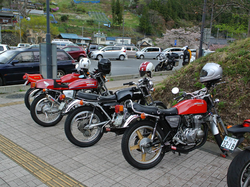 参加者:まこちゃん、キムさん、DSさん、たぁ 爆弾低気圧が来るって予報でしたが、朝になったら晴れちゃったので、急遽ゲリラツーリング招集! ![]() 関越道三芳PAへは10時集合。 ![]() 今季初ツーリングなので、みなさんウキウキご歓談中♪ 相変わらずピカピカなDS号は男前なハンドル付けたり、マフラー変えたりで、今季もいじくりまわしてる(らしいよ) ナニゲニデレスケ激写!(ワハハー) ![]() ![]() 川越ICで高速を下りたら、R299でシュシュッと正丸駅到着。 DS号何気にテールランプ切れで、本日二度目のデレスケっす♪ ![]() ウチの方じゃソメイヨシノ満開=タラの芽頃合いだけど、この辺じゃまだまだ硬いんだねー。 ![]() モミジイチゴが咲いてたyo! ![]() R299を走り、秩父駅の手前で県道11を右折すると、程無く 『お好み焼きHI−な』 さん到着。 あれ〜? どっかで見た事あるブルーのSLが停まってますねー♪ ![]() 注意! ![]() 入店してみると、先客SLのオーナーはスティーブマックイーン! じゃなくて、峠のおじさんでした(ワハハー) 連れのお方はhosoさんなのかな? 軽くご挨拶して、僕等も着席。 行列も覚悟してましたが、空いてて良かった♪ ご常連の峠のおじさんに、お勧めメニューを教わります。 ![]() 店内にはジミー君やジロー君も♪ ![]() ノーマルな広島お好み焼きと、峠のおじさんご推奨のナンチャラスペシャル辛ソースを二個ずつ注文。 さぁ〜、焼けて来ましたよ、僕等のお好み焼き達♪ ![]() 焼き上がりました〜! ご主人のハイナさん、一見さんの僕らなのに、わざわざハーフ&ハーフにして頂き、感謝(ペコリ) ノーマルとスペシャルのハーフ&ハーフのマヨビーム素敵♪ 僕は広島風お好み焼きは初めて食いましたが、いやはや、これはウマイですねー。 でも焼くのが難しそうなので、やっぱしこーしてご主人に焼いてもらうスタイルがいーんですね♪ ![]() ナメコ汁も頂きました。 ちなみにビール無しでお好み焼き食ったのは36年ぶりですけどね!(ワハハー) その後ご常連らしき青いマッハのカクイイお兄さんとかもご来店し、ご主人やおじさん達と単車話で盛り上がっておりました。 つーことで、美味しいお好み焼きごちそう様。 来た道をプシュッと走って帰ります。 すると走り出して間もなく、R299手前辺りに差し掛かると、一天にわかにかき曇り・・・・ 雨が降って来ましたー! なんせ今日は降水確率100%の雨男DSさんが一緒ですからね(ワハハー) 給油がてらGSで雨宿り。 雨が上がるのをまって出発したら、またすぐに雨が・・・・ う〜ん、DSさん、今日から雨神様に昇格です(ワハハー) ![]() つーことで、道の駅芦ヶ久保にて再度雨宿りいっぷく。 通り雨をやり過ごし、出発すると、正丸トンネルの向こう側は青空でした。 その後関越道に乗ってピュ〜っと走り、キムさん&DSさんとはぐれてしまい、新倉PAにて僕とまこちゃんでいっぷく後、解散となりました。 ![]() 本日の走行距離245km 無事故無違反 2デレスケ♪ また行きましょう。 |