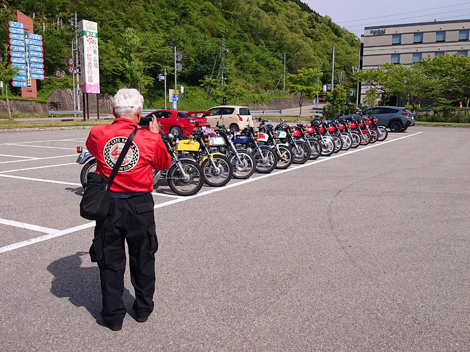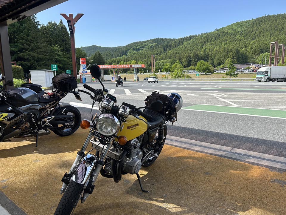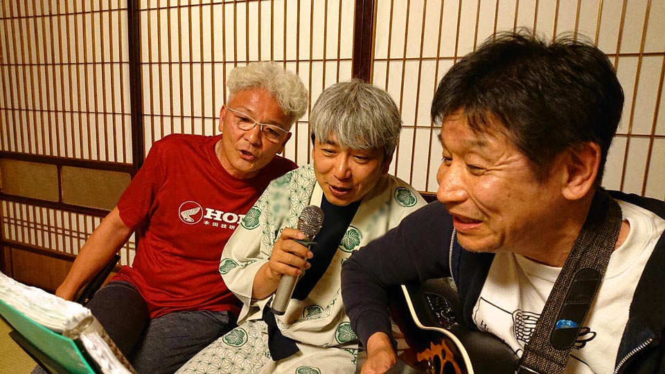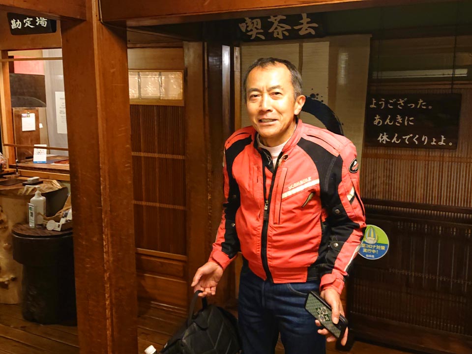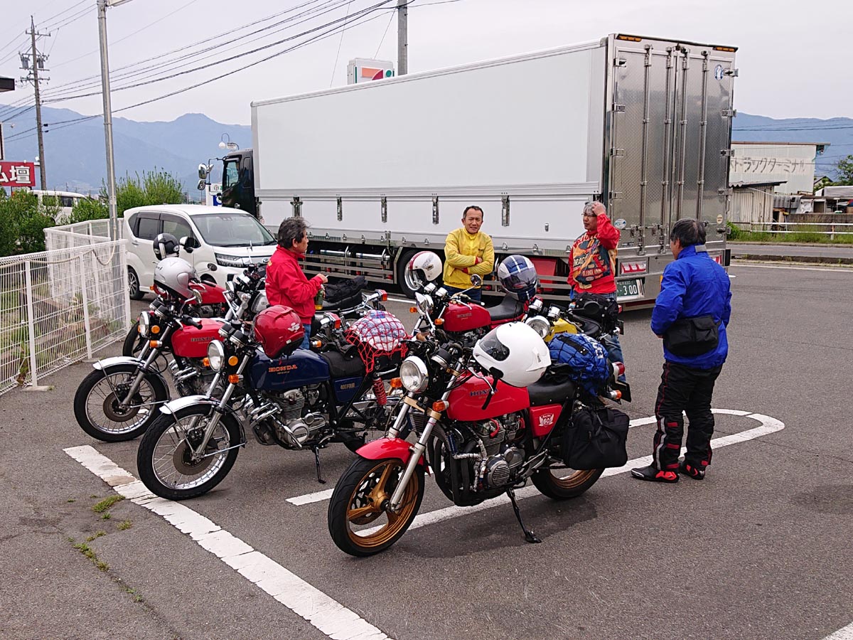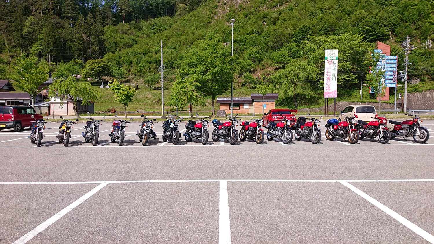 参加者:ジローさん、キムさん、たぁ、ゲストRMご夫妻 群馬・愛知・関西・東京チーム合同のお泊りミーティングに行って来ました。 ![]() 第一集同場所の首都高幻の箱崎Pでキム号をハイエースに積み込み、シュシュッと高速ワープで信州松本着。(所要時間は3.5時間) 最寄りの駐車場にハイエースを停め、マイフォア、キム号の2台を下ろして最寄りのGSで給油したらツーリングスタート♪ ![]() チョイ先にある第二集合場所のセブンイレブンで山梨の殿と合流。 強い日差しの中待っていたら、ガソリン入れ過ぎだった様で溢れて来ました! ガソリンのモッキリはンまかねぇ!(ワハハー) チョッチュル吸い取って調整。 強い日差しでタンクが温められ、内部空気が膨張してガソリンが押し出されちゃうんですね。 給油口のハカマに小穴を設けて空気が抜ける様に工夫せんといけませんな。 ![]() こちらへ向かってる群馬チームが道中アクシデント発生した様で、待つ間にハルジオンをパチリ。 見慣れた白花に混じり、ピンク色の濃いのが咲いてます。 イマイチ色気が描写し切れん(ワハハー) セブンが日影が無く厳しいので、少し先のローソンで待つ事に。 遅れる事30分程で群馬チームが到着し、タッチ&ゴーで出発。 ![]() ![]() 毎度利用さしてもらってる、R158沿い梓湖の手前のみどの手打ちそばでランチ。 蕎麦は少し柔らかかったけど、味が良いだけにチョッチュル残念かな。 ![]() 腹ごしらえが済んでパチリ。 久し振りに再会した群馬チーム会長とよっちゃんにご挨拶、サンゴーフォア乗りの方には初めましてのご挨拶。 ピカピカのサンゴー、良いもん見せてもらいました。 会長号とよっちゃん号はピカピカ完全ノーマル。 やっぱし長く乗ってると、一周廻ってノーマルに戻るんすね♪ ![]() その頃、やはりトランポワープを使い飛騨高山前泊で別ルートで参加の、ゲストMRご夫妻は豪勢なブルジョアランチをお召し上がりのご様子♪ 尚もR158を西へ向かい、懐かしい梓湖の奈川度ダムを横目に見て、安房峠へ・・・・ 僕は寒くて暗くてつまらない安房トンネルをスルーして、旧道の安房峠へ向かいますが、峠道に入ってすぐに冬季通行止めの看板が・・・ 仕方無く引き返して安房トンネル通って皆さんを追います。 ![]() ![]() ![]() トンネル出口、平湯ICにていっぷくパチリ。 昭和の頃ならこの時期、凍える程寒かったんですが、年々温暖化が続き、快適過ぎて拍子抜けするやら空恐ろしいやら。 ![]() 傍らにはイケマやらウドが生えてます♪ 平湯から高山市内までカントリーロードをダラ〜リと流し、高山ICより高山清美道路〜東海北陸自動車道を経て荘川ICで高速を降り、道の駅桜の郷荘川へ。 ![]() 関西チームの待つ道の駅へ到着でパチリ♪ ![]() ![]() ![]() ![]() ![]() ![]() 整列パチリ。 懐かしい面々とご挨拶。 ![]() その頃、遅れて参加のジローさんが出発したと連絡が♪ ![]() 少し先のGSにて給油。 走行は124.5kmの給油が5.91Lで21km/Lをマーク! 大人しく流せば、こんぐらい走るんだねぇ♪ ![]() ![]() 皆さん給油してる間に、僕は荘川桜公園まで先に行き、パチリ♪ それにしてもマイフォア、カクイイわ〜♪(ワハハー) 昔々、荘川に御母衣ダムを建設した折、湖底に沈んだ集落にあった桜の老木をここへ移植したんだそうです。 当時既に樹齢500年だったらしいけど、凄いねぇ。 参考資料 ![]() ![]() ![]() ![]() ![]() 本日のお宿に到着でパチリ♪ 相変わらず良い風情であります。 綺麗に磨かれた床板とかね、ゆらゆらガラスが琴線に触れるのです。(流しのカランが刷新されちゃったのはチョッチュル残念かな) ![]() ![]() 外湯への送迎バスを待つ間に河原やお庭を散策。 ゴン太ワラビやらウドが生えてます。 オダマキも綺麗。 ここへ至る道々、ワラビを摘んでる人がチラホラ見えましたねぇ。 眼下の渓流にはカジカガエルが鳴き、渓魚のライズが頻繁に見られ、釣り人心をくすぐりますのー♪ 次回は事前にタックルを郵送しといて、チョイの間イブニングライズを狙うなんて、悪く無いなぁ。 ![]() で、お風呂が済んだらお待ちかね、宴スタート♪ ![]() しっかり仕事がされた料理は予算に鑑みると、破格。 ![]() 今回ご参加の皆さん限定で、ヨンフォア発売50周年祈念ワッペンが配られました。 考えてみれば、古い方とはもう20年以上のお付き合いなんですな。 ![]() てなことをやってると、ジローさんご到着♪ 前回同様、寒かったそうです(ワハハー) ![]() 流しの大ちゃんスタンバイオッケーで、カラオケカーニヴァォスタート! トップバッターは関西会長。 ![]() シミ♪ ![]() ![]() お口直しに二の膳を♪ ![]() ![]() ![]() ![]() ![]() ![]() ![]() ![]() ナリキリブラックモア・ナリキリジュリー・ナリキリジョニー・ナリキリ清志郎豪華共演♪ ![]() 二次会は例年通り日付変更線を越えた(らしいよ) そして就寝後は皆さんソレックスをゴァゴァ言わせた(らしいよ) ![]() 朝餉であります。 ![]() 朝からガッツリいけちゃうねぇ♪ ![]() 名物に美味いものあり朴葉味噌。 ![]() コイツを食う