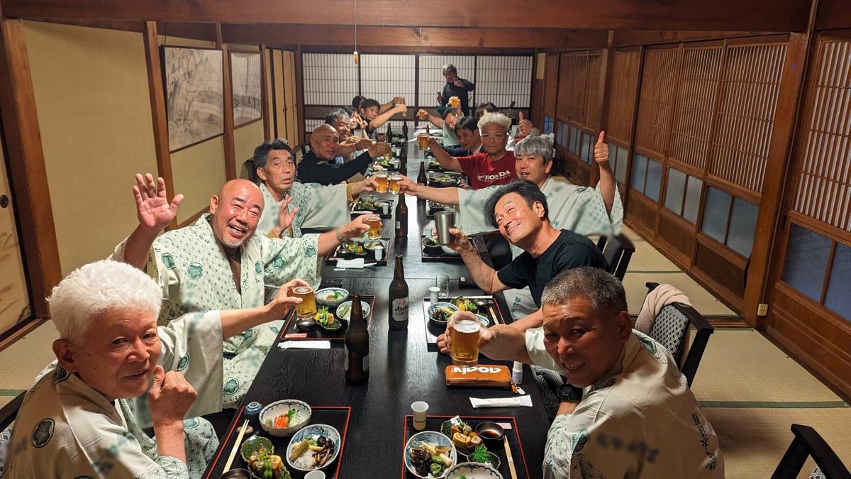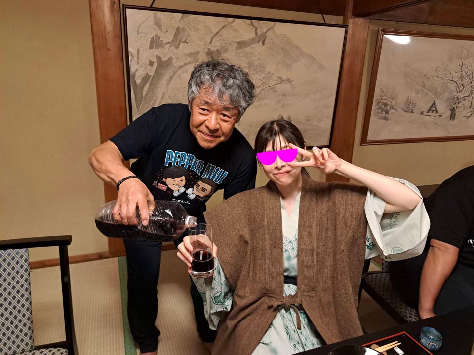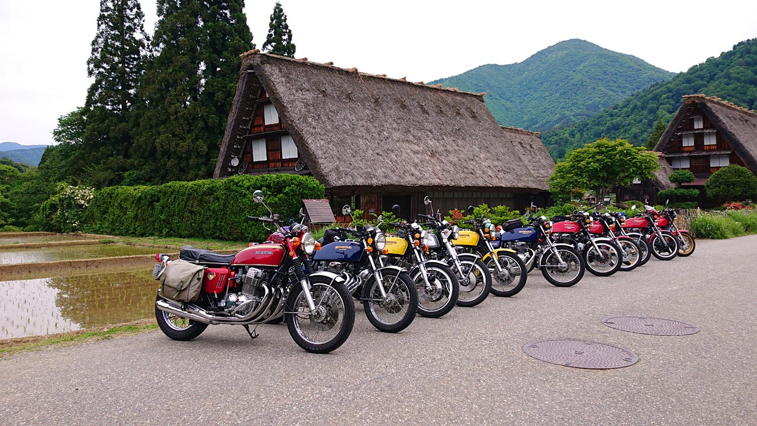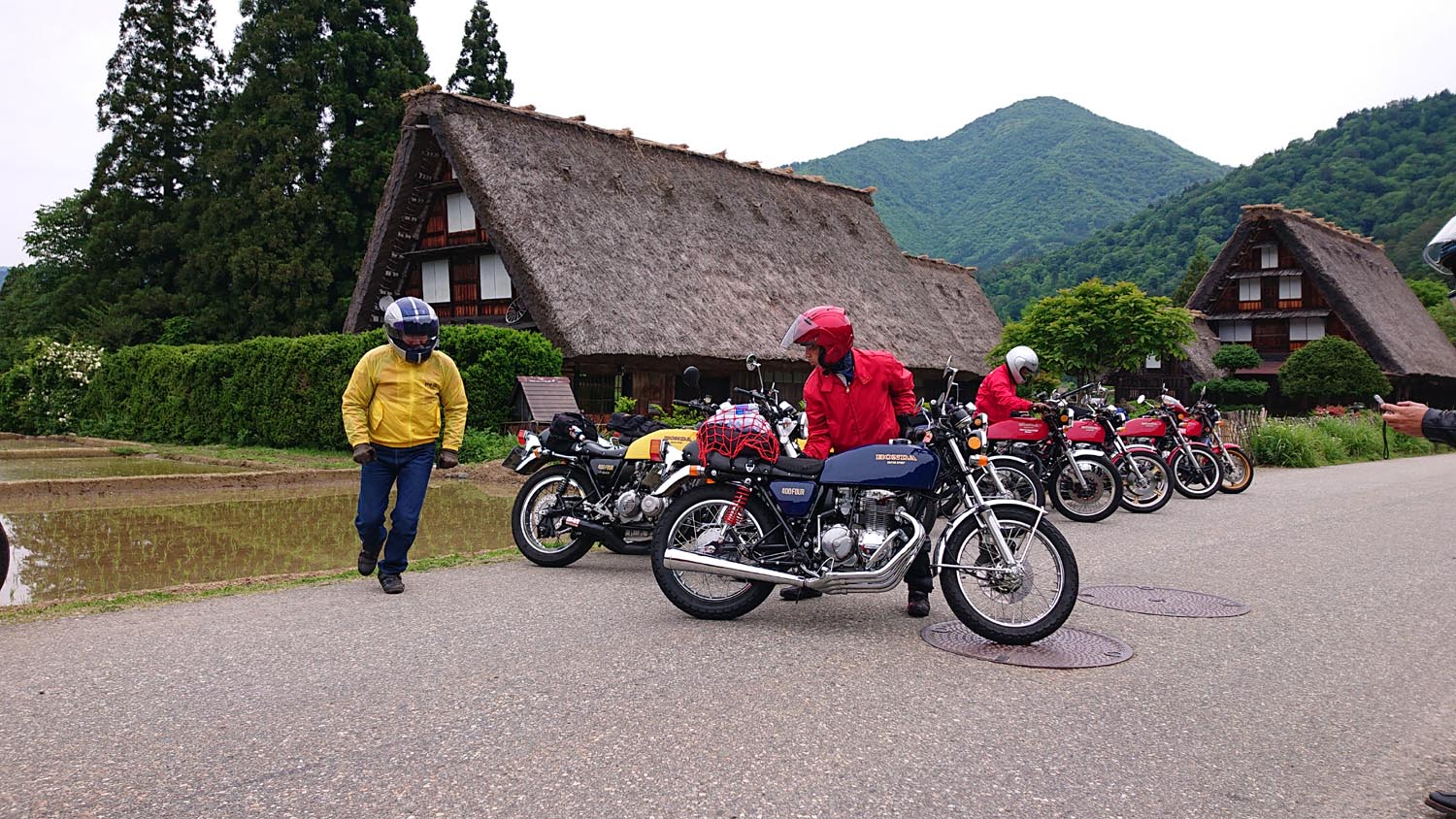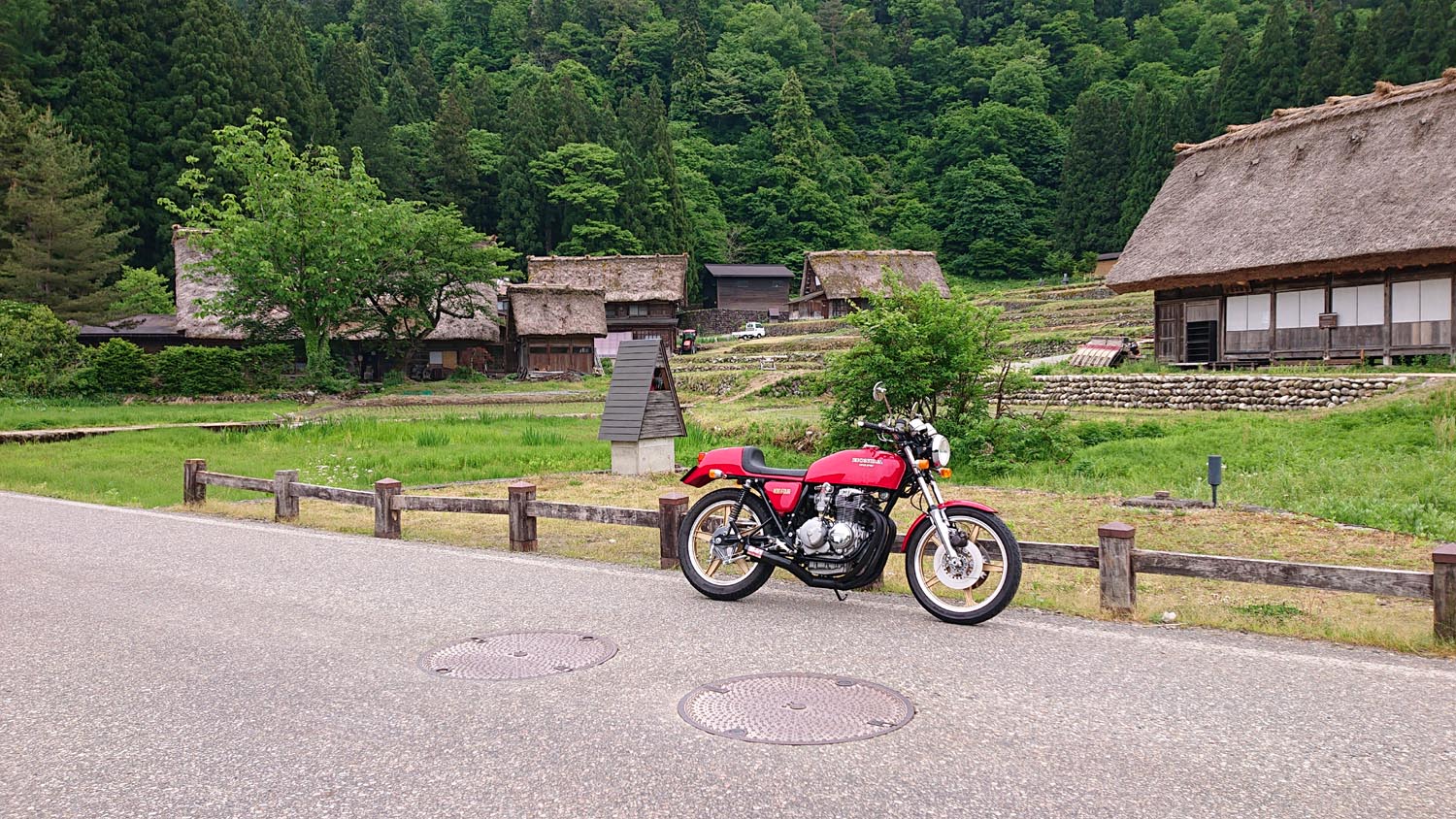 参加者:ジローさん、キムさん、たぁ、ゲストRMご夫妻 群馬・愛知・関西・東京チーム合同のお泊りミーティングに行って来ました。 ![]() 第一集同場所の首都高幻の箱崎Pでキム号をハイエースに積み込み、シュシュッと高速ワープで信州松本着。(所要時間は3.5時間) 最寄りの駐車場にハイエースを停め、マイフォア、キム号の2台を下ろして最寄りのGSで給油したらツーリングスタート♪ ![]() チョイ先にある第二集合場所のセブンイレブンで山梨の殿と合流。 強い日差しの中待っていたら、ガソリン入れ過ぎだった様で溢れて来ました! ガソリンのモッキリはンまかねぇ!(ワハハー) チョッチュル吸い取って調整。 強い日差しでタンクが温められ、内部空気が膨張してガソリンが押し出されちゃうんですね。 給油口のハカマに小穴を設けて空気が抜ける様に工夫せんといけませんな。 ![]() こちらへ向かってる群馬チームが道中アクシデント発生した様で、待つ間にハルジオンをパチリ。 見慣れた白花に混じり、ピンク色の濃いのが咲いてます。 イマイチ色気が描写し切れん(ワハハー) セブンが日影が無く厳しいので、少し先のローソンで待つ事に。 遅れる事30分程で群馬チームが到着し、タッチ&ゴーで出発。 ![]() ![]() 毎度利用さしてもらってる、R158沿い梓湖の手前のみどの手打ちそばでランチ。 蕎麦は少し柔らかかったけど、味が良いだけにチョッチュル残念かな。 ![]() 腹ごしらえが済んでパチリ。 久し振りに再会した群馬チーム会長とよっちゃんにご挨拶、サンゴーフォア乗りの方には初めましてのご挨拶。 ピカピカのサンゴー、良いもん見せてもらいました。 会長号とよっちゃん号はピカピカ完全ノーマル。 やっぱし長く乗ってると、一周廻ってノーマルに戻るんすね♪ ![]() その頃、やはりトランポワープを使い飛騨高山前泊で別ルートで参加の、ゲストMRご夫妻は豪勢なブルジョアランチをお召し上がりのご様子♪ 尚もR158を西へ向かい、懐かしい梓湖の奈川度ダムを横目に見て、安房峠へ・・・・ 僕は寒くて暗くてつまらない安房トンネルをスルーして、旧道の安房峠へ向かいますが、峠道に入ってすぐに冬季通行止めの看板が・・・ 仕方無く引き返して安房トンネル通って皆さんを追います。 ![]() ![]() ![]() トンネル出口、平湯ICにていっぷくパチリ。 昭和の頃ならこの時期、凍える程寒かったんですが、年々温暖化が続き、快適過ぎて拍子抜けするやら空恐ろしいやら。 ![]() 傍らにはイケマやらウドが生えてます♪ 平湯から高山市内までカントリーロードをダラ〜リと流し、高山ICより高山清美道路〜東海北陸自動車道を経て荘川ICで高速を降り、道の駅桜の郷荘川へ。 ![]() 関西チームの待つ道の駅へ到着でパチリ♪ ![]() ![]() ![]() ![]() ![]() ![]() 整列パチリ。 懐かしい面々とご挨拶。 ![]() その頃、遅れて参加のジローさんが出発したと連絡が♪ ![]() 少し先のGSにて給油。 走行は124.5kmの給油が5.91Lで21km/Lをマーク! 大人しく流せば、こんぐらい走るんだねぇ♪ ![]() ![]() 皆さん給油してる間に、僕は荘川桜公園まで先に行き、パチリ♪ それにしてもマイフォア、カクイイわ〜♪(ワハハー) 昔々、荘川に御母衣ダムを建設した折、湖底に沈んだ集落にあった桜の老木をここへ移植したんだそうです。 当時既に樹齢500年だったらしいけど、凄いねぇ。 参考資料 ![]() ![]() ![]() ![]() ![]() 本日のお宿に到着でパチリ♪ 相変わらず良い風情であります。 綺麗に磨かれた床板とかね、ゆらゆらガラスが琴線に触れるのです。(流しのカランが刷新されちゃったのはチョッチュル残念かな) ![]() ![]() 外湯への送迎バスを待つ間に河原やお庭を散策。 ゴン太ワラビやらウドが生えてます。 オダマキも綺麗。 ここへ至る道々、ワラビを摘んでる人がチラホラ見えましたねぇ。 眼下の渓流にはカジカガエルが鳴き、渓魚のライズが頻繁に見られ、釣り人心をくすぐりますのー♪ 次回は事前にタックルを郵送しといて、チョイの間イブニングライズを狙うなんて、悪く無いなぁ。 ![]() で、お風呂が済んだらお待ちかね、宴スタート♪ ![]() しっかり仕事がされた料理は予算に鑑みると、破格。 ![]() 今回ご参加の皆さん限定で、ヨンフォア発売50周年祈念ワッペンが配られました。 考えてみれば、古い方とはもう20年以上のお付き合いなんですな。 ![]() てなことをやってると、ジローさんご到着♪ 前回同様、寒かったそうです(ワハハー) ![]() 流しの大ちゃんスタンバイオッケーで、カラオケカーニヴァォスタート! トップバッターは関西会長。 ![]() シミ♪ ![]() ![]() お口直しに二の膳を♪ ![]() ![]() ![]() ![]() ![]() ![]() ![]() ![]() ナリキリブラックモア・ナリキリジュリー・ナリキリジョニー・ナリキリ清志郎豪華共演♪ ![]() 二次会は例年通り日付変更線を越えた(らしいよ) そして就寝後は皆さんソレックスをゴァゴァ言わせた(らしいよ) ![]() 朝餉であります。 ![]() 朝からガッツリいけちゃうねぇ♪ ![]() 名物に美味いものあり朴葉味噌。 ![]() コイツを食う