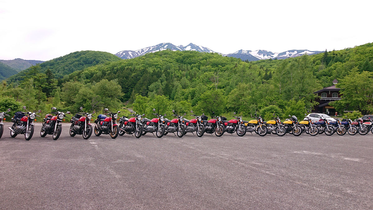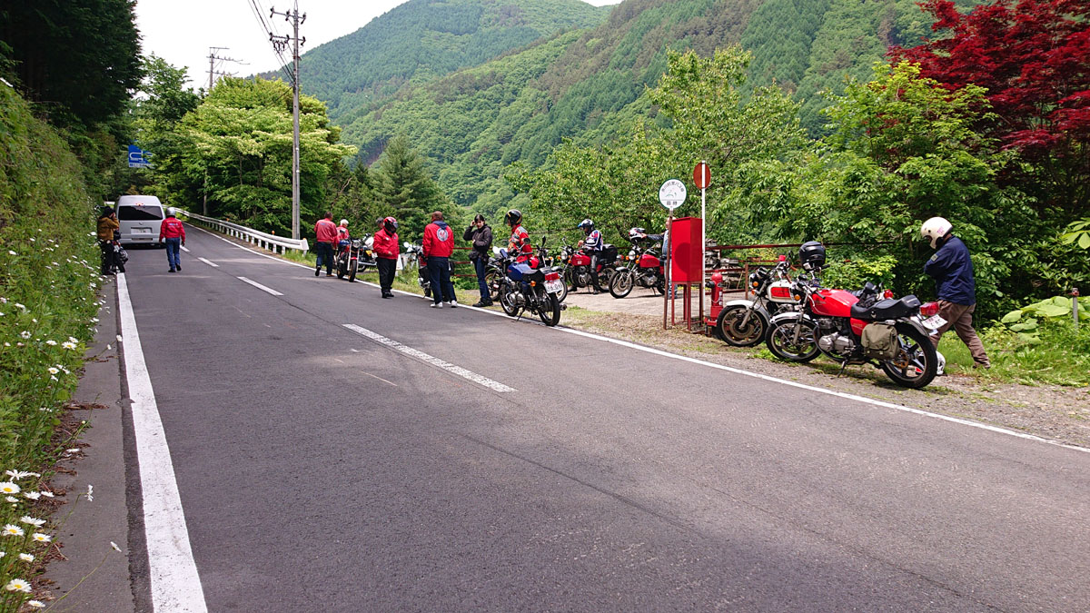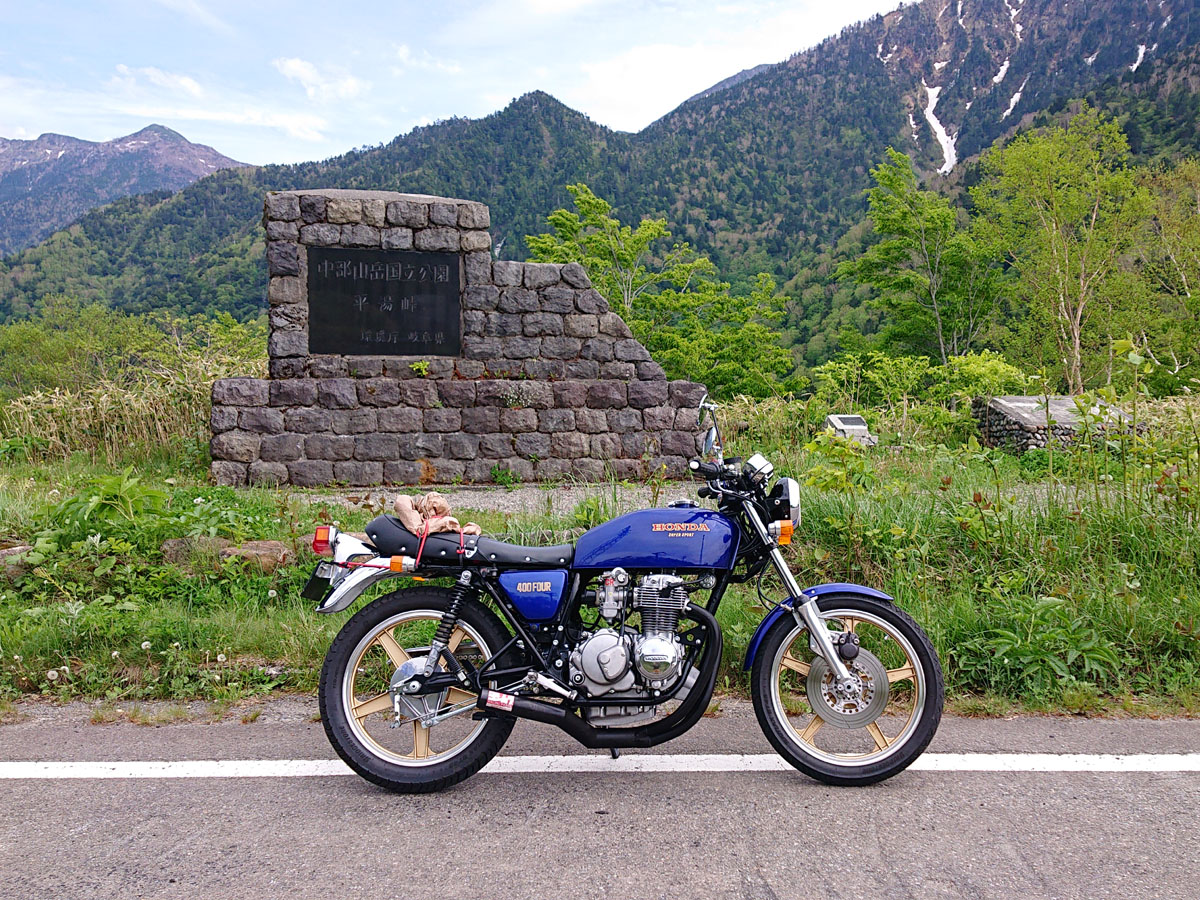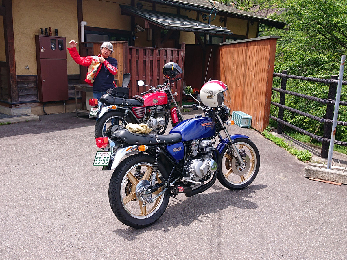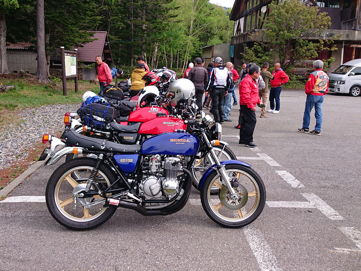 6月7日〜8日の二日間で、毎年恒例の合同ツーリングに行って来ました。 主催は4into1owners club関西・4into1owners club FOURS・CB400FOUR OWNERS CLUB ゲストで山梨の殿・西新井秘宝館館主・I氏・ベホリ氏、総勢22名。 昨年同様、同伴者のキムさんとは首都高にある、幻の箱崎PAで6時に集合。 ![]() 去年はそのまんま積めた筈なのに、今年は何故かナンバープレートが当たり、外しました。 首都高〜中央道をワープし、長野県へ向かうんですが、首都高から相模湖の先までバッチリ渋滞に遭い、 岡谷ICまでは4時間20分掛かってしまいました。 ![]() 岡谷市内の某パーキングに到着、ここからツーリング開始です。 ![]() と思ったら、キャブレターから派手にオーバーフロー、第一デレスケ確定です♪(ワハハー) まぁあれだ、3ヵ月放置してたから、フロートの動きが悪くなってんですね。 暫くコックをON/OFF繰り返せば治るでしょう。 ![]() 塩尻の郊外で最初の給油。 ここまでの走行距離は13km。 群馬チームとの集合場所のローソンは予定を1時間30分過ぎてるのでスルー・・・・ ![]() ![]() R158をグルングルン行き、梓湖の手前のいつものお蕎麦屋さんでランチ。 群馬チームの皆さん、遅れてしまいすみませんでした。 ![]() お蕎麦は去年ほどではないが、やっぱし柔らかめ。 来年はバリカタで頼むとしましょう♪ そうそう、窓の外ではエゾハルゼミの蝉時雨。 キュリリ・・・・ケケケケケ・・・・と涼し気に合唱していたね。 この二日間、山の方ならどこにいても鳴いていたね。 尚もR158を西進し、安房トンネル手前から、旧道の安房峠へ・・・・ ![]() ![]() ![]() 峠の茶屋跡にて、パチリ。 ![]() 寂れてはいるけれど、630円も払ってつまらんトンネル走るよりも、僕は断然こっちを選びますね! VIVA! 旧道!! ![]() ![]() イタドリやら育ち過ぎのタラの芽が生えてますが、お目当てのウドはナッシングで残念。 ここから岐阜県側の下りは路面状態も良く、思う存分クネクネを満喫出来ました。 30年前にこの時期にここいら辺でウドやワラビをたくさん採ったんですが、 温暖化が進んだ今は山菜は伸びちゃって手遅れでありました。 ![]() それでもしばらく降りたところで良さげなエリアがあり、散策。 ここでイケマ・トリアシショウマなんかをゲッチュ♪ ![]() これは育ち過ぎたモミジガサ(別名シドケ) 次に来るんならGW直後ですが、生憎その頃は積雪通行止めなんすよねー。 尊敬するマッチャンの鉄人様より、これは木いちごの類ではとのご指摘を頂きました。 確かに僕も現場で一瞬思い浮かんだのですが、これにクリソツな木いちごと言えばカジイチゴ。 カジイチゴは地元に沢山生えており、見慣れいる種。 カジイチゴは寒冷地には生えないので、標高から言っても無いかなと。 さりとて葉っぱや茎は典型的なモミジガサとは少し様子が違うのは認める所。 葉っぱを齧ってみれば判ったんだろうけど、そこまでする程の事でも無いかなと。 てなわけで、モミジガサに良く似たヤツって事に致しましょう♪ ![]() 更にクネクネ降りていくと、エテ公が居たので写真を撮ろうと近づくと、逃げられちゃった。 傍らを見れば、ウド♪ 穂先の柔らかいところを摘んで、今夜の二次会のおかずにしましょう。 安房峠越えを満喫したら、トンネル出口料金所のところで先行していたキムさんと落ち合い、いっぷく。 彼は高山方面から平湯トンネルを通りやって来る予定の関西・群馬組をここで待つとの事。 僕は時間的余裕はあると踏んで、本日の第2スペシャルステージ、平湯峠へ向かう事に。 ![]() ![]() 念願だった平湯峠をグルングルン上り、天辺でパチリ。 安房峠よりも観光バスが通る分、良い路面が維持されてんですね。 VIVA! 旧道!! ここからR158までクネクネ下り、R158出会いにて、やってくるであろう関西・群馬チームを待ちますが、 中々やって来ません。 ここでモヨーシテ来てしまい、雉撃ちを一発ぶっ放します。 正調クラッシックスタイルで蕗の葉っぱで拭って一丁上がり♪ 改めて道路端へ出ると、黄色の斥候フォアが一台通りかかり、手を振ってます。 暫く後続を待ちますが、待てど暮らせど来ネェので、痺れを切らし、もう一度平湯峠をグルングルン越え、 キムさんの待つ安房トンネル料金所まで戻ると、ちょうど関西・群馬チームも平湯トンネルルートで到着したところでありました。 ![]() 全員揃って、白骨温泉方面へ抜ける県道300出会いの広場でいっぷく。 ここからのクネクネワインディングも中々のモンでありました。 ![]() 途中、満開のヤマツツジの前でパチリしたり、途中でウドやらイケマ摘んだり道草しながらクネクネ上がり・・・・ ![]() ![]() ![]() ![]() ![]() なんちゃらカフェでいっぷく。 ここはどうやら幹事Mちゃんのご希望スポットみたいですのー。 ここから本日の宿まで走るんですが、途中でウドなんか採りながら走っていたら、 腰に巻いていたジャンバーがほどけて飛んで行きそうに。 走りながらジャンバーを小脇に抱え直して路肩に緊急停止