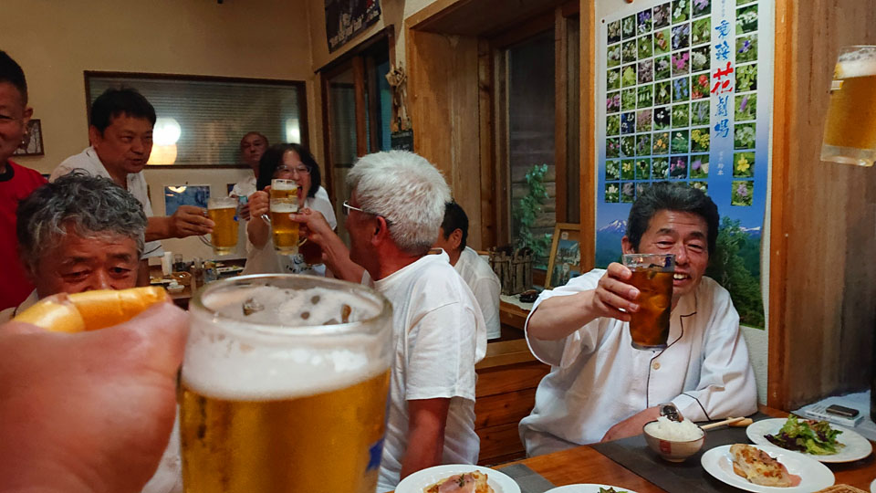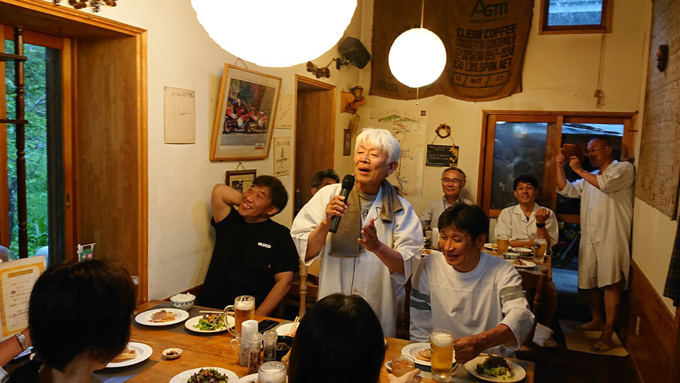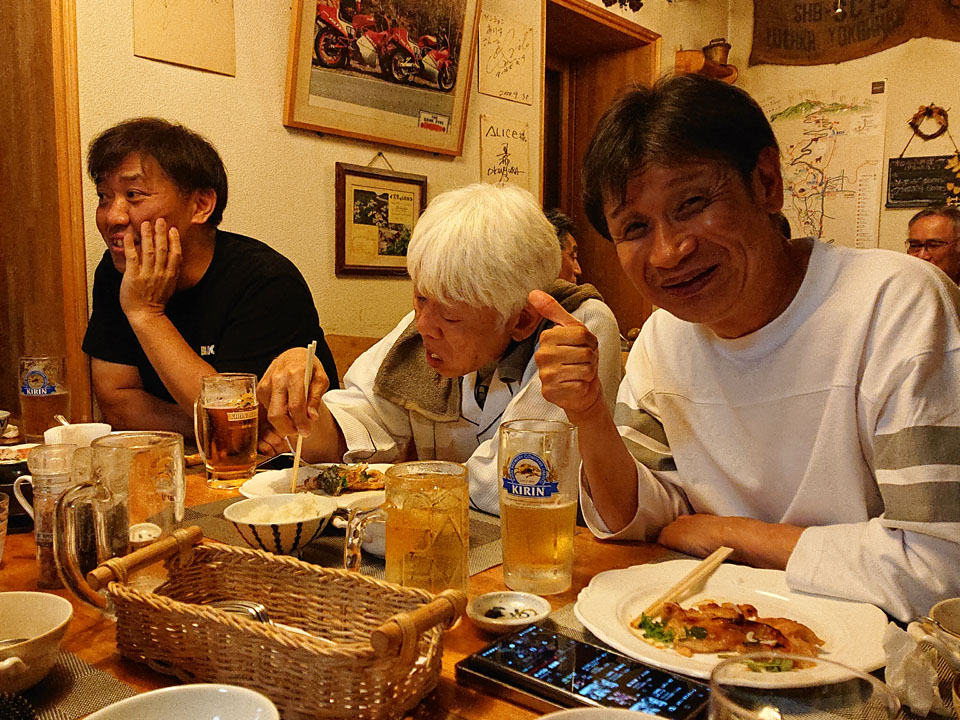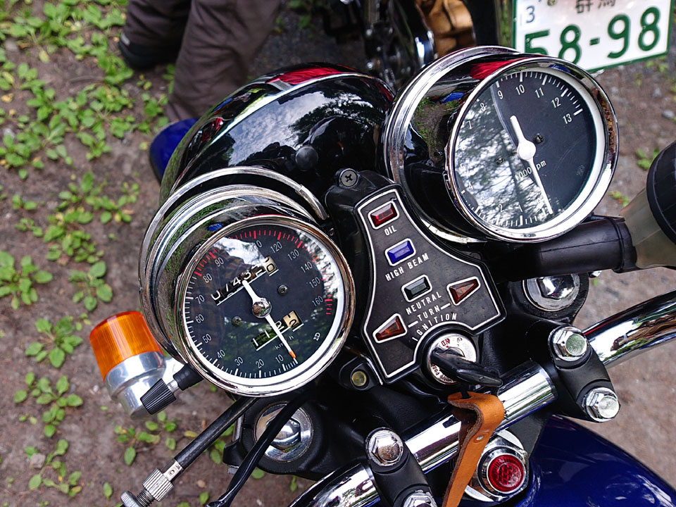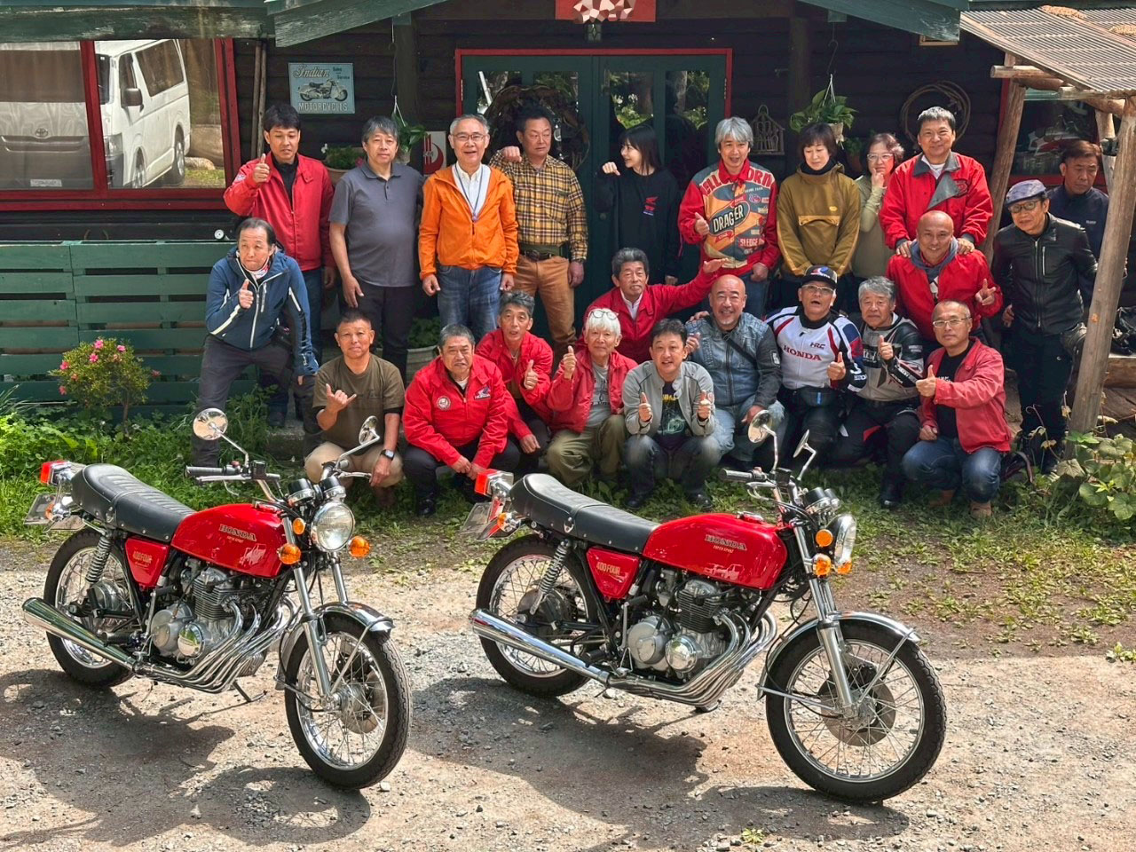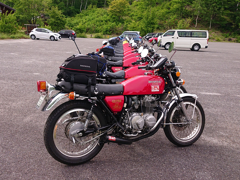 6月7日〜8日の二日間で、毎年恒例の合同ツーリングに行って来ました。 主催は4into1owners club関西・4into1owners club FOURS・CB400FOUR OWNERS CLUB ゲストで山梨の殿・西新井秘宝館館主・I氏・ベホリ氏、総勢22名。 昨年同様、同伴者のキムさんとは首都高にある、幻の箱崎PAで6時に集合。 ![]() 去年はそのまんま積めた筈なのに、今年は何故かナンバープレートが当たり、外しました。 首都高〜中央道をワープし、長野県へ向かうんですが、首都高から相模湖の先までバッチリ渋滞に遭い、 岡谷ICまでは4時間20分掛かってしまいました。 ![]() 岡谷市内の某パーキングに到着、ここからツーリング開始です。 ![]() と思ったら、キャブレターから派手にオーバーフロー、第一デレスケ確定です♪(ワハハー) まぁあれだ、3ヵ月放置してたから、フロートの動きが悪くなってんですね。 暫くコックをON/OFF繰り返せば治るでしょう。 ![]() 塩尻の郊外で最初の給油。 ここまでの走行距離は13km。 群馬チームとの集合場所のローソンは予定を1時間30分過ぎてるのでスルー・・・・ ![]() ![]() R158をグルングルン行き、梓湖の手前のいつものお蕎麦屋さんでランチ。 群馬チームの皆さん、遅れてしまいすみませんでした。 ![]() お蕎麦は去年ほどではないが、やっぱし柔らかめ。 来年はバリカタで頼むとしましょう♪ そうそう、窓の外ではエゾハルゼミの蝉時雨。 キュリリ・・・・ケケケケケ・・・・と涼し気に合唱していたね。 この二日間、山の方ならどこにいても鳴いていたね。 尚もR158を西進し、安房トンネル手前から、旧道の安房峠へ・・・・ ![]() ![]() ![]() 峠の茶屋跡にて、パチリ。 ![]() 寂れてはいるけれど、630円も払ってつまらんトンネル走るよりも、僕は断然こっちを選びますね! VIVA! 旧道!! ![]() ![]() イタドリやら育ち過ぎのタラの芽が生えてますが、お目当てのウドはナッシングで残念。 ここから岐阜県側の下りは路面状態も良く、思う存分クネクネを満喫出来ました。 30年前にこの時期にここいら辺でウドやワラビをたくさん採ったんですが、 温暖化が進んだ今は山菜は伸びちゃって手遅れでありました。 ![]() それでもしばらく降りたところで良さげなエリアがあり、散策。 ここでイケマ・トリアシショウマなんかをゲッチュ♪ ![]() これは育ち過ぎたモミジガサ(別名シドケ) 次に来るんならGW直後ですが、生憎その頃は積雪通行止めなんすよねー。 尊敬するマッチャンの鉄人様より、これは木いちごの類ではとのご指摘を頂きました。 確かに僕も現場で一瞬思い浮かんだのですが、これにクリソツな木いちごと言えばカジイチゴ。 カジイチゴは地元に沢山生えており、見慣れいる種。 カジイチゴは寒冷地には生えないので、標高から言っても無いかなと。 さりとて葉っぱや茎は典型的なモミジガサとは少し様子が違うのは認める所。 葉っぱを齧ってみれば判ったんだろうけど、そこまでする程の事でも無いかなと。 てなわけで、モミジガサに良く似たヤツって事に致しましょう♪ ![]() 更にクネクネ降りていくと、エテ公が居たので写真を撮ろうと近づくと、逃げられちゃった。 傍らを見れば、ウド♪ 穂先の柔らかいところを摘んで、今夜の二次会のおかずにしましょう。 安房峠越えを満喫したら、トンネル出口料金所のところで先行していたキムさんと落ち合い、いっぷく。 彼は高山方面から平湯トンネルを通りやって来る予定の関西・群馬組をここで待つとの事。 僕は時間的余裕はあると踏んで、本日の第2スペシャルステージ、平湯峠へ向かう事に。 ![]() ![]() 念願だった平湯峠をグルングルン上り、天辺でパチリ。 安房峠よりも観光バスが通る分、良い路面が維持されてんですね。 VIVA! 旧道!! ここからR158までクネクネ下り、R158出会いにて、やってくるであろう関西・群馬チームを待ちますが、 中々やって来ません。 ここでモヨーシテ来てしまい、雉撃ちを一発ぶっ放します。 正調クラッシックスタイルで蕗の葉っぱで拭って一丁上がり♪ 改めて道路端へ出ると、黄色の斥候フォアが一台通りかかり、手を振ってます。 暫く後続を待ちますが、待てど暮らせど来ネェので、痺れを切らし、もう一度平湯峠をグルングルン越え、 キムさんの待つ安房トンネル料金所まで戻ると、ちょうど関西・群馬チームも平湯トンネルルートで到着したところでありました。 ![]() 全員揃って、白骨温泉方面へ抜ける県道300出会いの広場でいっぷく。 ここからのクネクネワインディングも中々のモンでありました。 ![]() 途中、満開のヤマツツジの前でパチリしたり、途中でウドやらイケマ摘んだり道草しながらクネクネ上がり・・・・ ![]() ![]() ![]() ![]() ![]() なんちゃらカフェでいっぷく。 ここはどうやら幹事Mちゃんのご希望スポットみたいですのー。 ここから本日の宿まで走るんですが、途中でウドなんか採りながら走っていたら、 腰に巻いていたジャンバーがほどけて飛んで行きそうに。 走りながらジャンバーを小脇に抱え直して路肩に緊急停止